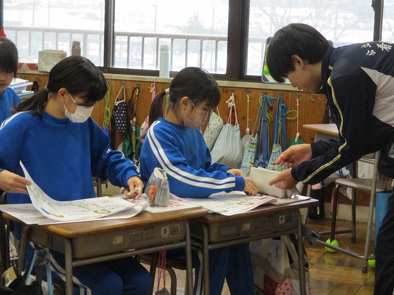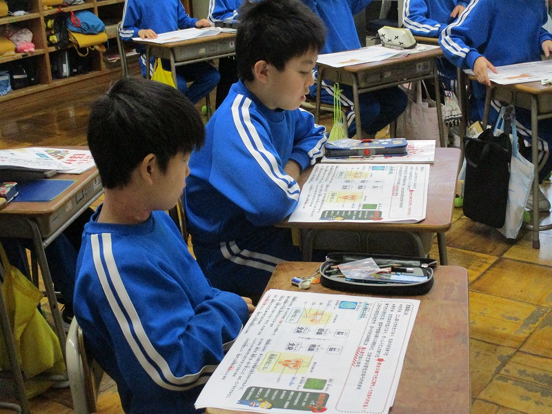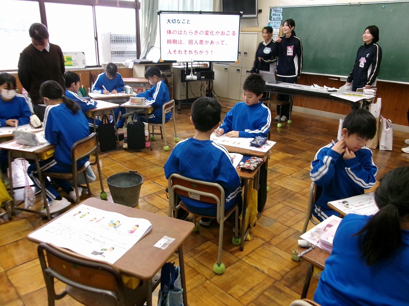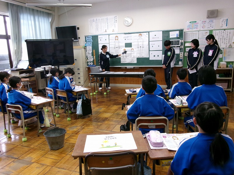 1月28日、若狭高等看護学院の学生さんが来校され、4年生に授業をしてくださいました。