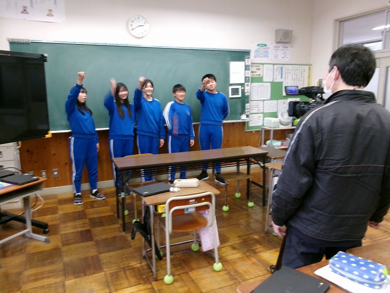 この日、普段の授業風景を撮影していただいた後、中学校に向けて意気込みを表明しました。