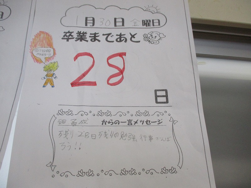 卒業式までのカウントダウンも始まっています。6年生と過ごせる一日一日を大事にしていきたいです。