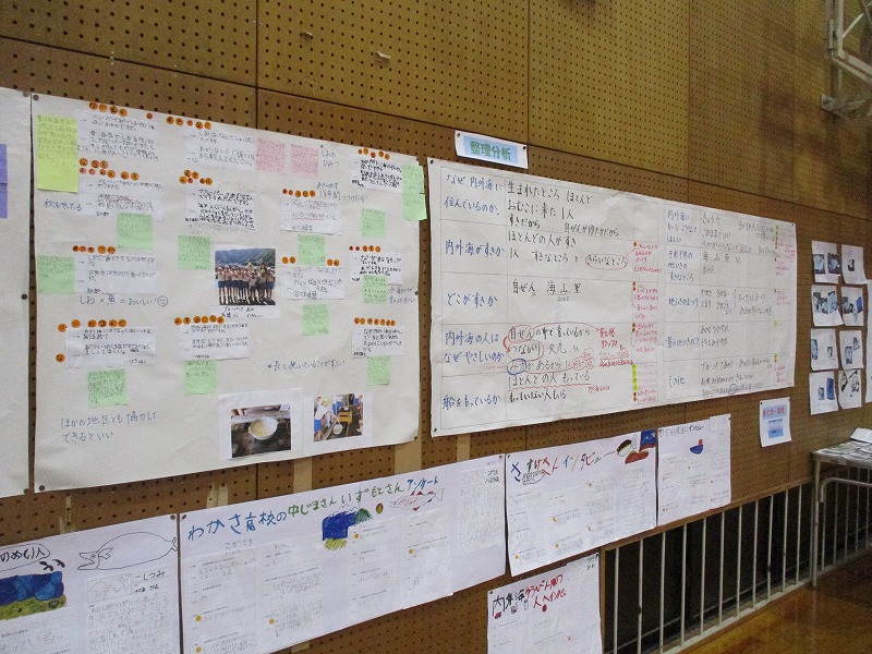 インタビューする中で「人が減らないように」「このままの内外海であってほしい」等、地域の方の願いにふれ、「今後、人口が減らないようにするには?」「よさを広めるためには?」といった新たな学習課題を見つけていたのが印象的でした。