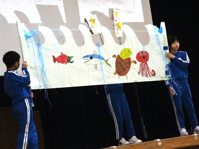 その言葉通り、一人一人が海の生き物の気持ちになって、堂々と発表しました。1年間にわたって、学習を支えてくださった大森先生も登場。1年生の「大森先生、大好き」「学校が好き」とという言葉をうれしく受け止めました。