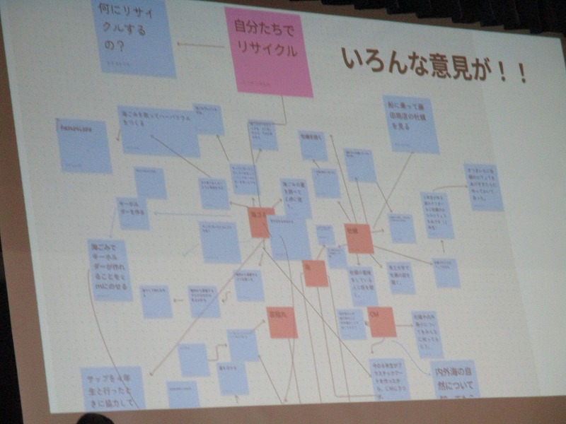 5年生は「内外海版アップサイクル」の発表をしました。海ごみをごみのままにせずに再利用する方法を、地域の方や若狭高校さんの協力をいただきながら進めた学習について発表しました。 学習を進めるにあたり、4年生までの学習をふり返ったり、学びたいことを出し合ったりしてサイトマップを作成したようです。