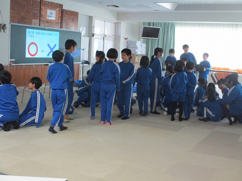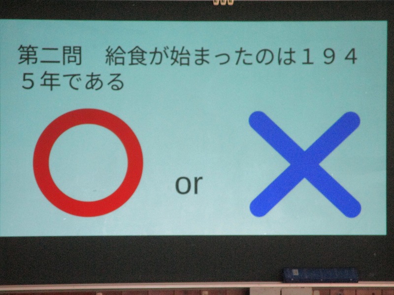 給食委員会の子供たちが考えた〇✖クイズも全校みんなが楽しみながら参加しました。