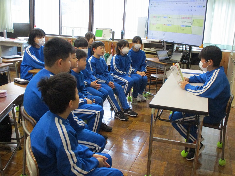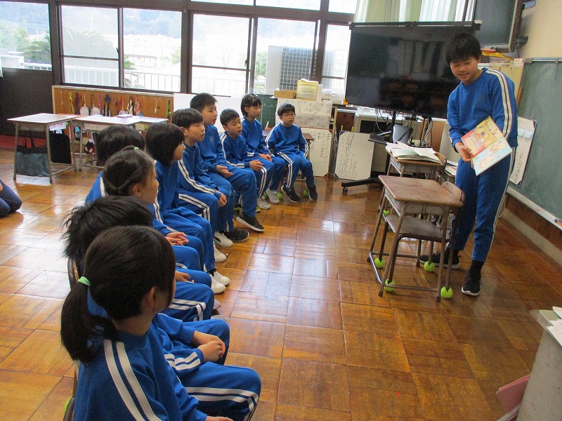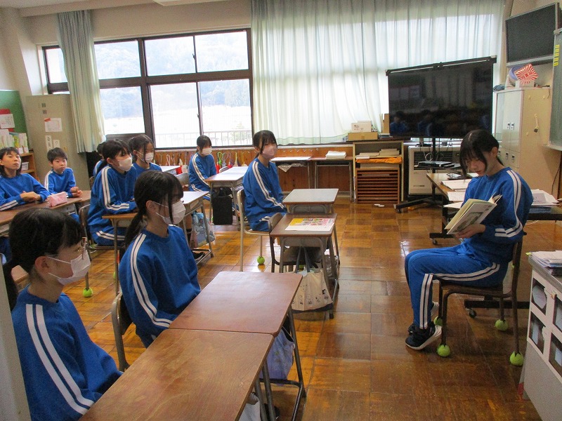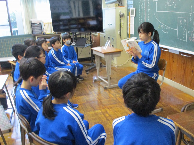下級生の注目を浴びて、6年生は緊張の表情でしたが、読み進めるうちに聞き手に伝わるように朗読することに気持ちがうつっていきました。