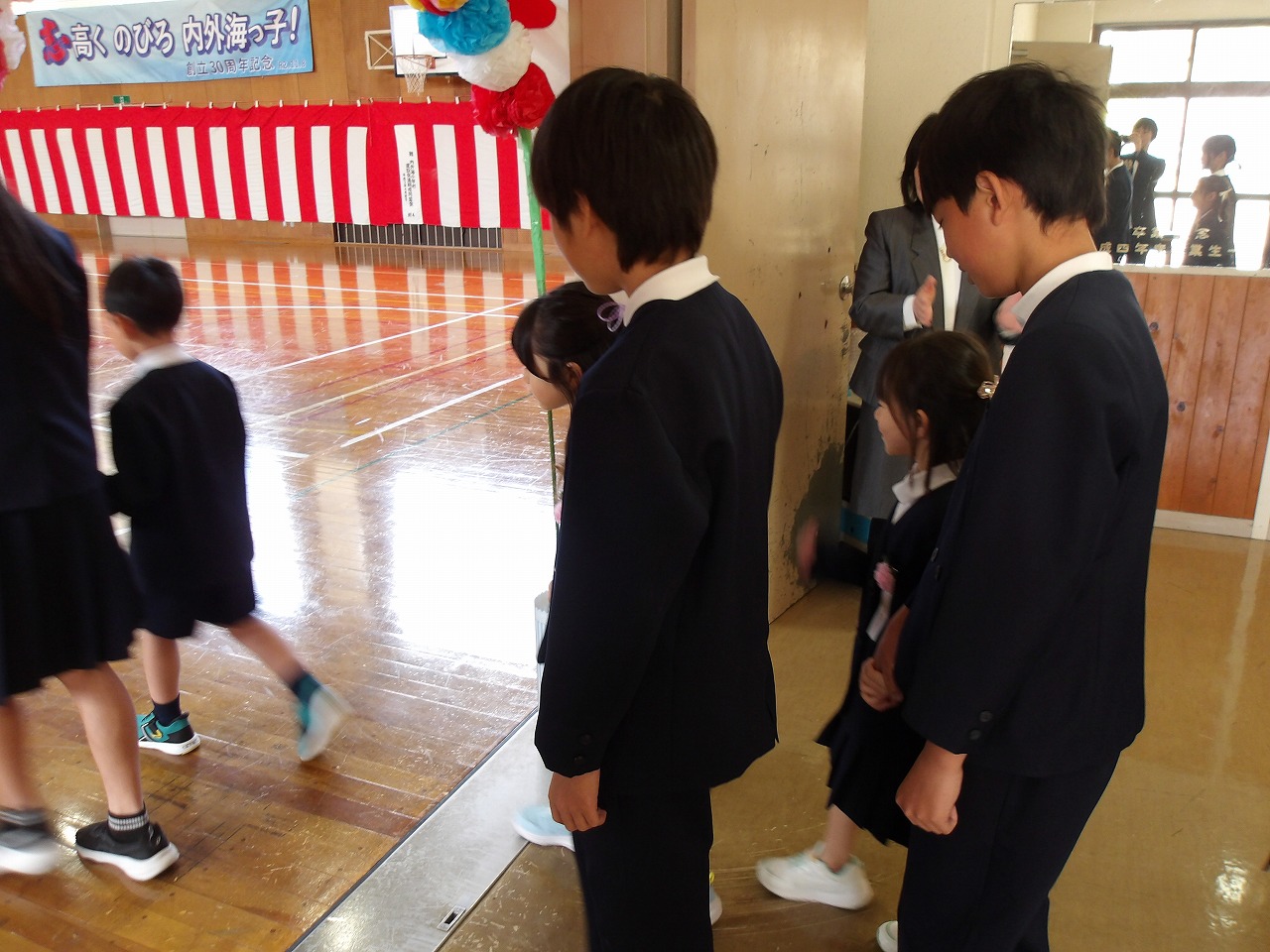 1年生は緊張の面持ちでした。6年生は壊れやすい宝物を守るように、そっと1年生の手を引いていました。担任の先生に名前を呼ばれると、1年生から元気な返事が返ってきました。素晴らしいです!