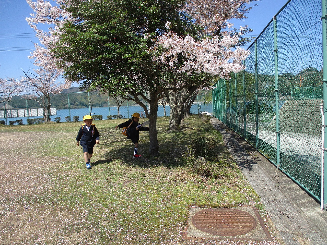 帰る前には、早速、広い校庭を友達と走り回る姿が見られました。