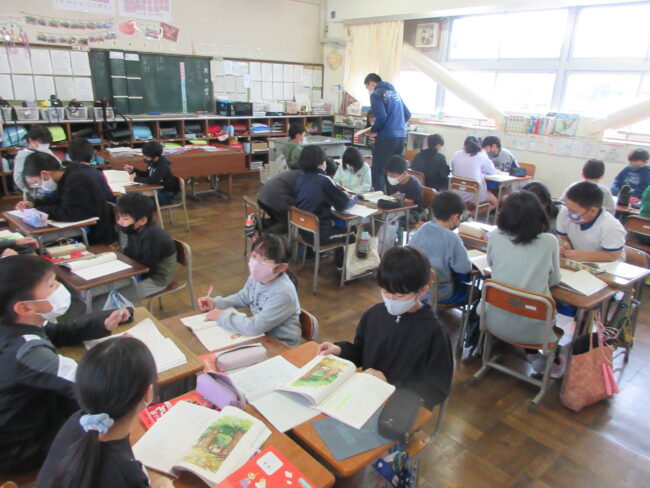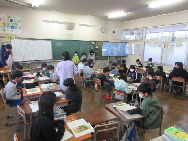 その後、子ども達はそれぞれ自分の考えを、教科書の文や語句を根拠に述べていました。