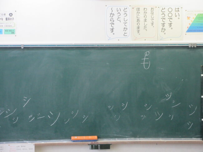 「カタカナの「シ」はどうやって書くのかな?」その課題には多くの子ども達が黒板に出て書き始めました。