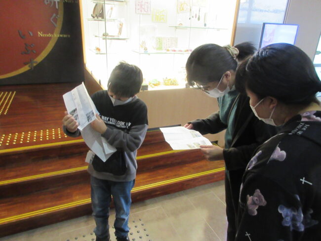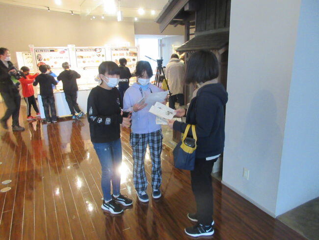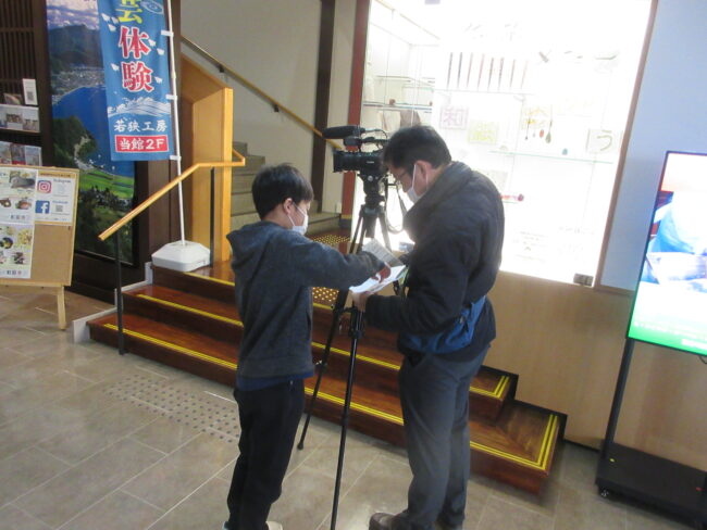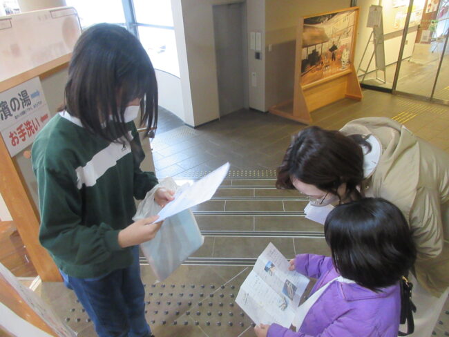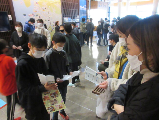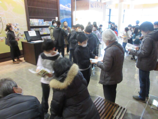 5年生は各グループで作成したパンフレットを食文化館で配り鯖街道について聞いてもらう体験をしました。