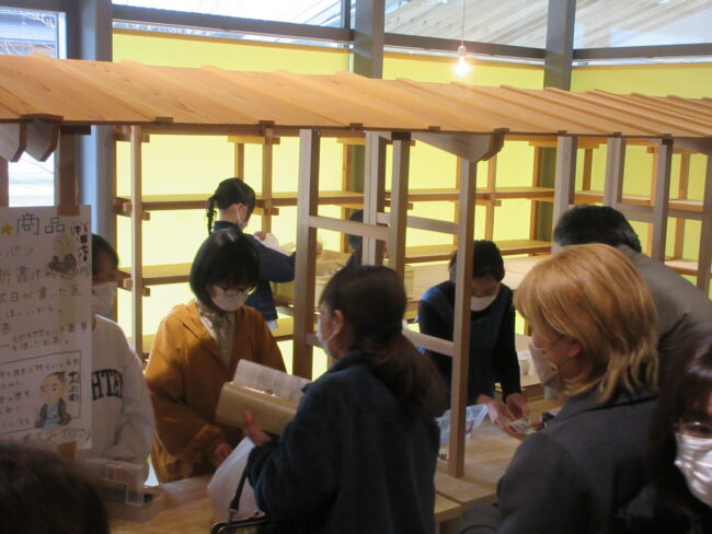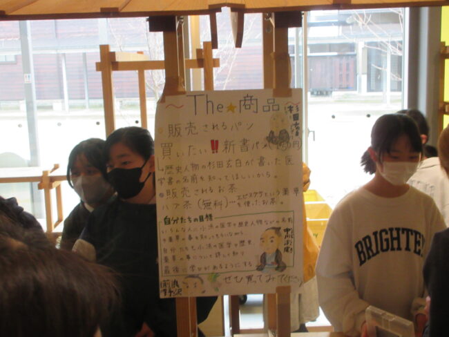 そして歴史の人をより自分たちの身近に感じてもらおうとみんなで考えたのが「買いたい!新書パン」でした。パンの製作にはブランジェリーオカモトさんのご協力をいただきました。