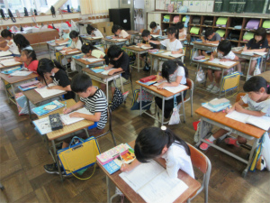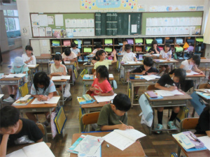 続いて、となりの教室の3年生。きょうは65-28の計算を暗算でするようです。