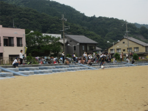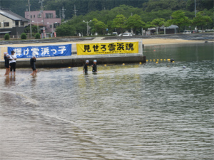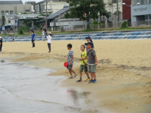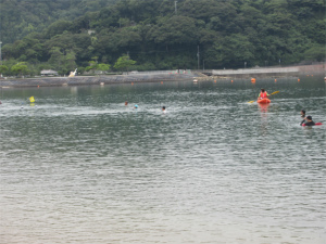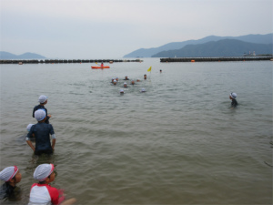 1日遅れになりましたが、暑すぎない天候のもとで5年生の海での遠泳大会が行われました。