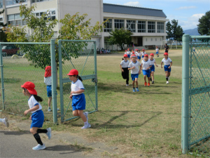 1年生にとっては初めてのマラソンコース。でも2年生に負けじと一生懸命に走ることができました。