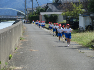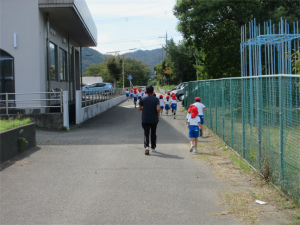 秋晴れの今日は1,2年生のマラソンコース試走が行われました。
