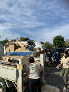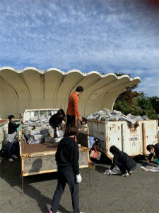 今日は資源回収。台場浜公園でPTAや地域の方が集めてこられた資源を振り分けます。
