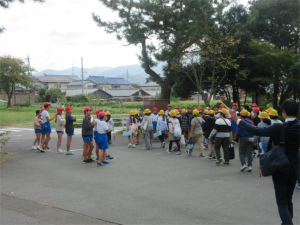 5年生に見送られながら「行ってきます!」「がんばってね」
