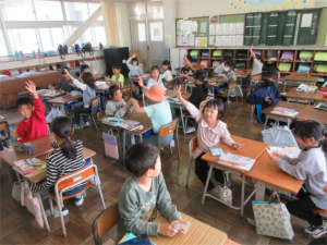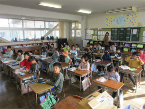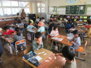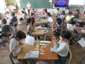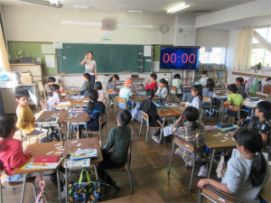 2年生の2限目は算数の学習です。いきなり子ども達の歌が始まりました。