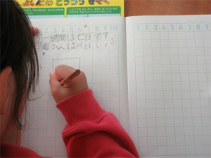 一人調べの時間に教室のカレンダーを見ながら考えている子もいました。考え方を絵に表したら次はみんなで確認です。
