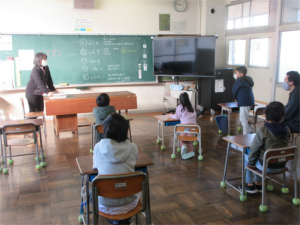冬休みの生活について確認してい学級、下足箱のそうじをしている学級、冬休み中の学習計画をたたている学級、休み中の命の大切さについて考えている学級…など学級それぞれに最後の時間を送っていました。