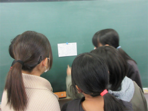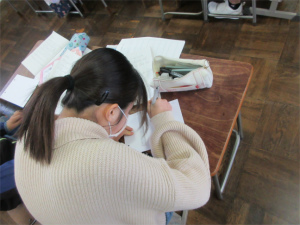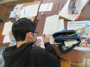 これまで英語の時間を使ってALTの先生に教えてもらいながら、中には自分の力で英文に仕立ててきたようです。