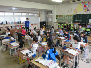 動作を加えながら英語を発音したり、笑顔でうなずきながら友達の発表を聴く班の子ども達の様子が印象的でした。