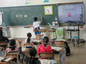 続いて2年生。今日は算数の『大きな数を数字であらわそう』の学習です。