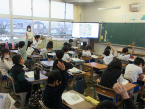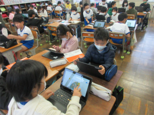 お話作りの時のみんなのキラキラとした目が印象的でした。教科書に書き込むと修正が難しかもしれませんが、ジャムボード内だと自由にルートや出来事を変えることも可能です。