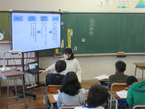 教科書の例文を参考に、ドキドキワクワクする展開にするために「起・承・転・結」について学びました。