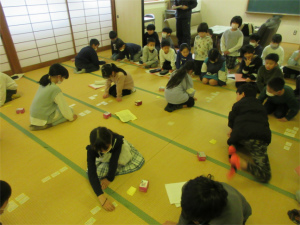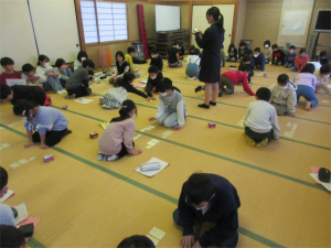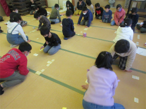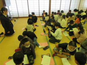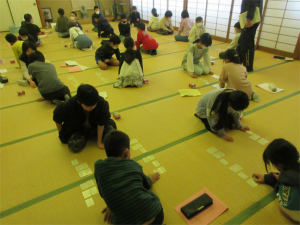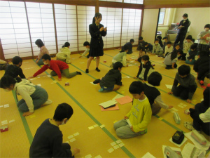 12日(金)は、高校生の清水さんに講師に来ていただき3,4年生合同で百人一首の練習を行いました。
