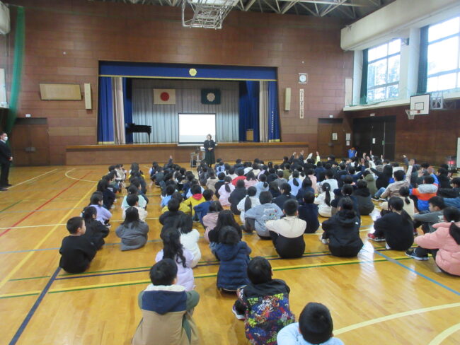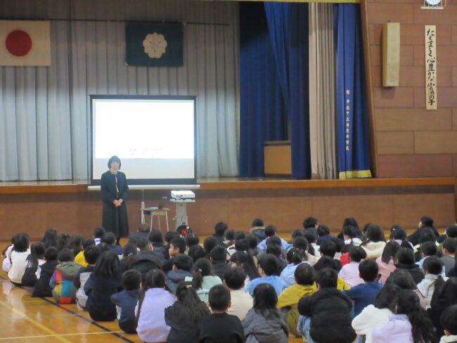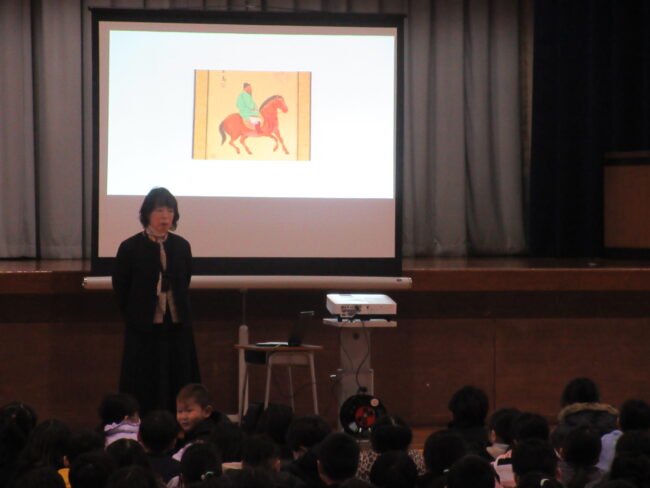 校長先生から「うまどし」にちなんで「馬」が入っている故事成語『人間万事塞翁が馬』のお話を聞きました。